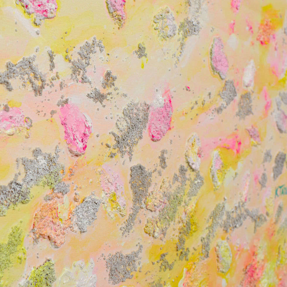 In contrast, Karine Taïlamé embraces color and material with bold intensity. In Jou Felicity (2025) and Magnificentia (2023), thick layers of paint almost take on a sculptural quality. Her vivid, sometimes fluorescent palette conveys the dense, humid atmosphere of the tropics: the heat, the trade winds, the organic vitality of Caribbean nature. Her flowers burst from the canvas like celebrations of life, inviting us into her intimate geography: a “tropical paradise” that is both real and imagined.